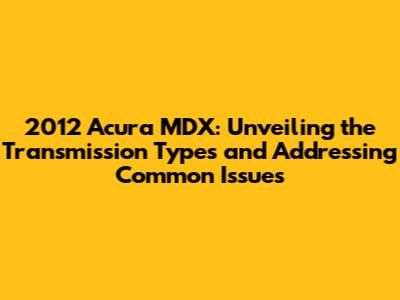 2012 Acura MDX: Transmission Types, Problems, And Solutions
