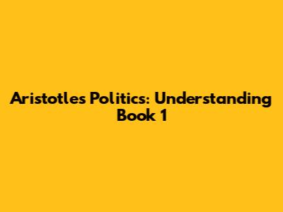 Aristotle's Politics: Understanding Book 1