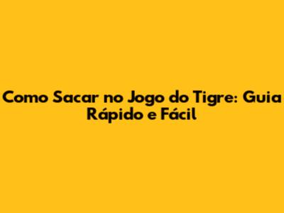 Como Sacar No Jogo Do Tigre: Guia Rápido E Fácil