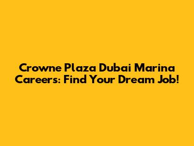 Crowne Plaza Dubai Marina Careers: Find Your Dream Job!