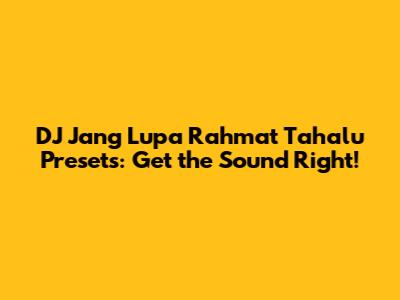 Hey guys, are you on the hunt for the DJ Jang Lupa Rahmat Tahalu presets? You've come to the right place! We're diving deep into what makes these presets so special and how you can snag them to elevate your DJ sets. It's all about getting that perfect sound, and with the right tools, you'll be dropping beats that everyone will remember. So, let's get into it and make some noise!