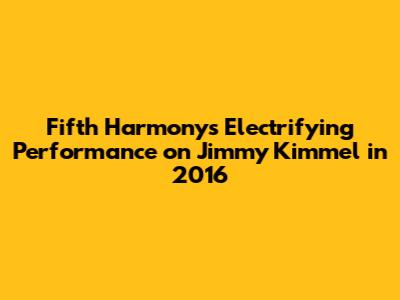 Guys, let's dive into a moment that had everyone talking! Back in 2016, Fifth Harmony graced the Jimmy Kimmel Live! stage with a performance that was nothing short of spectacular. This appearance wasn't just another gig; it was a defining moment for the group, showcasing their evolution and solidifying their place in the pop music scene. The energy, the vocals, the choreography – everything aligned to create a performance that fans still rave about today. When Fifth Harmony stepped onto the Jimmy Kimmel Live! stage in 2016, they weren't just performing songs; they were making a statement. The group, comprised of Ally Brooke, Normani Kordei, Dinah Jane, Lauren Jauregui, and at the time, Camila Cabello, had already captured hearts with their catchy tunes and vibrant personalities. However, this performance felt different. It was as if they were collectively announcing, "We're here, and we're not going anywhere." The choice of songs played a crucial role in setting the tone for the night. Each track was carefully selected to highlight different facets of their artistry, from their vocal harmonies to their individual strengths as performers. The setlist was a rollercoaster of emotions, taking the audience through upbeat anthems and soulful ballads, all while maintaining an undeniable level of energy that kept everyone hooked from start to finish. But it wasn't just about the music; the visual aspect of the performance was equally captivating. The stage setup, the lighting, and the costumes all worked together to create a visually stunning experience that complemented the music perfectly. Every detail was meticulously planned to ensure that the audience was not only hearing the music but also seeing a show that was worthy of their attention. As the lights dimmed and the music began to swell, there was an undeniable sense of anticipation in the air. Everyone knew that they were about to witness something special, and Fifth Harmony did not disappoint. They poured their hearts and souls into every note, every step, and every gesture, leaving no doubt in anyone's mind that they were a force to be reckoned with. It was a performance that will be etched in the memories of fans forever.