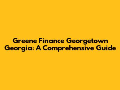 Greene Finance In Georgetown, Georgia: Your Local Guide