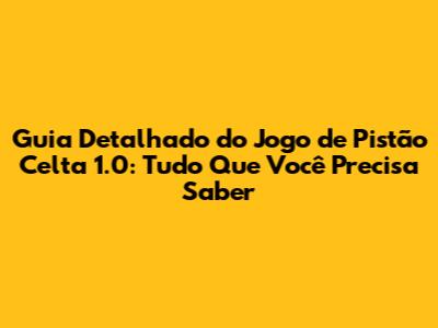 Guia Detalhado Do Jogo De Pistão Celta 1.0: Tudo Que Você Precisa Saber
