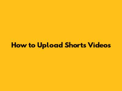 How To Upload Shorts Videos
