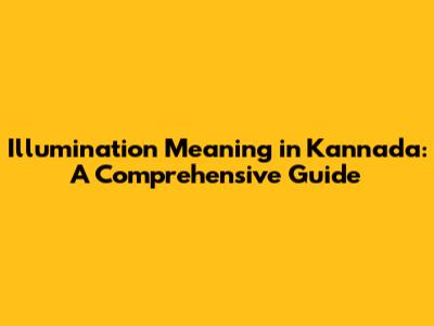 Illumination Meaning In Kannada: A Comprehensive Guide
