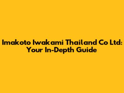 Imakoto Iwakami Thailand Co Ltd: Your In-Depth Guide
