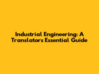 Industrial Engineering: A Translator's Essential Guide
