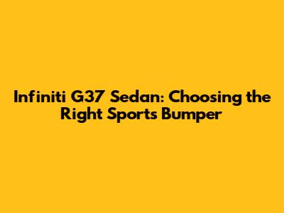 Infiniti G37 Sedan: Choosing The Right Sports Bumper