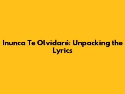Inunca Te Olvidaré: Unpacking The Lyrics