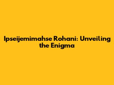 Ipseijemimahse Rohani: Unveiling The Enigma