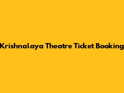 Krishnalaya Theatre: Book Your Tickets Now!
