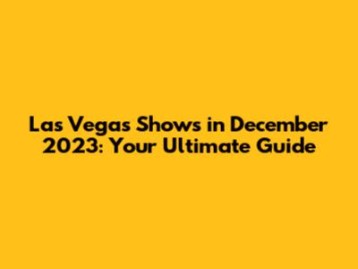 Las Vegas Shows December 2023: Your Unmissable Guide