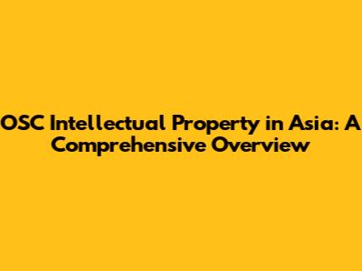 OSC Intellectual Property In Asia: A Comprehensive Overview