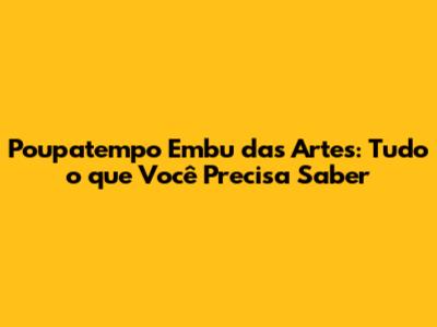 Como faço para agendar um horário no Poupatempo? Você pode agendar através do site oficial do Poupatempo ou pelo aplicativo Poupatempo Digital. Basta selecionar o serviço desejado, a unidade de Embu das Artes e escolher o dia e horário disponíveis.