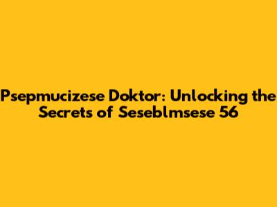 Psepmucizese Doktor: Unlocking The Secrets Of Seseblmsese 56