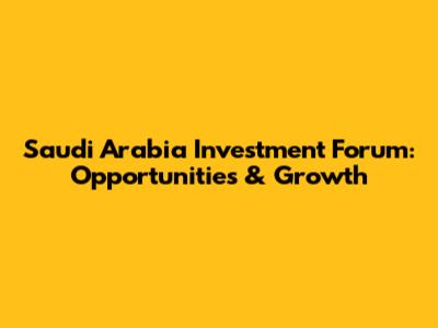 Saudi Arabia Investment Forum: Opportunities & Growth