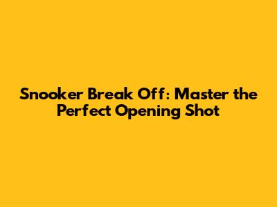 Snooker Break Off: Master The Perfect Opening Shot