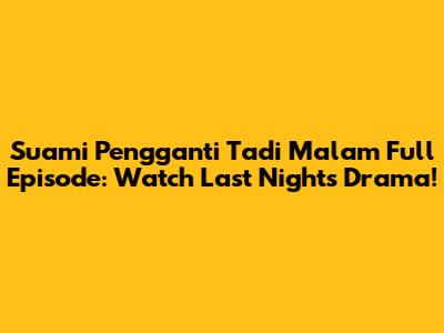 Hey guys! Are you looking for Suami Pengganti tadi malam full episode? You've come to the right place! Let's dive into everything about catching up on this super popular soap opera. We'll cover where to watch, what makes it so addictive, and why everyone's talking about it. Get ready to immerse yourself in the world of dramatic twists and turns!