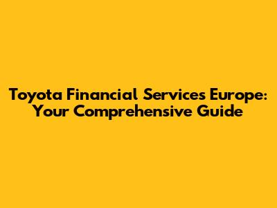 Toyota Financial Services Europe: Your Comprehensive Guide