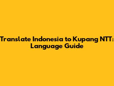 Translate Indonesia To Kupang NTT: Language Guide