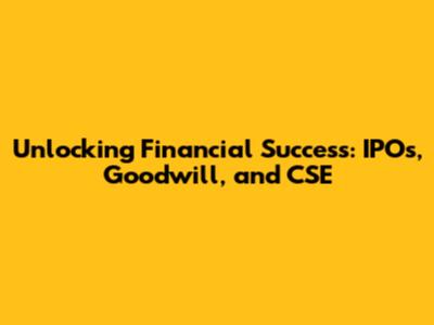 Unlocking Financial Success: IPOs, Goodwill, And CSE